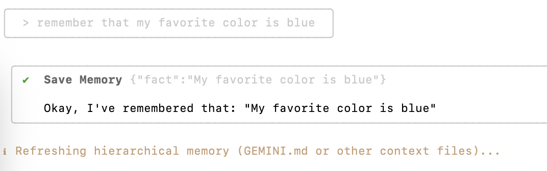 - Save information to persistent memory (~/.gemini/GEMINI.md
