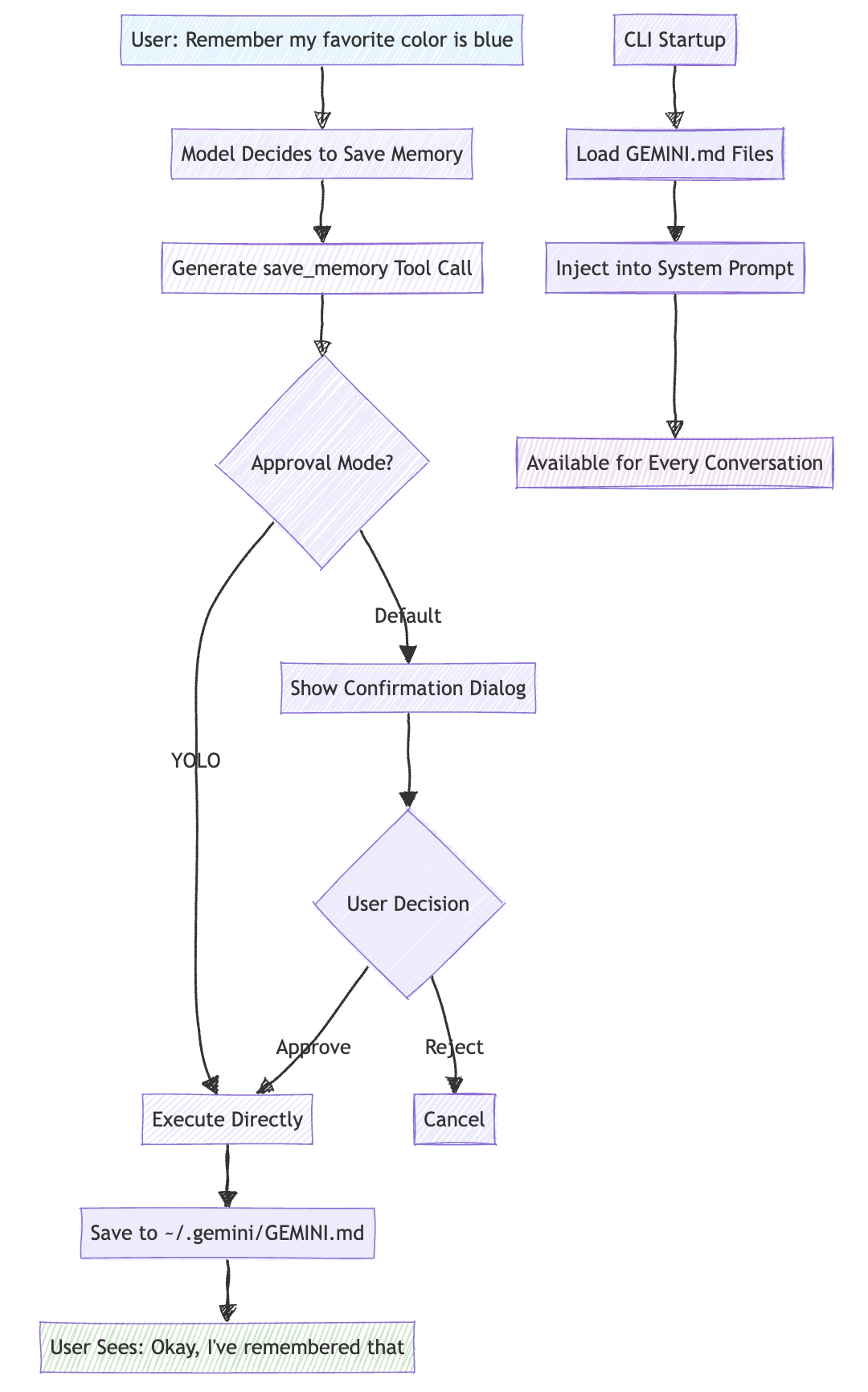 Here is a Mermaid diagram explaining how memory logic happens. It is very simple. Just a tool call.